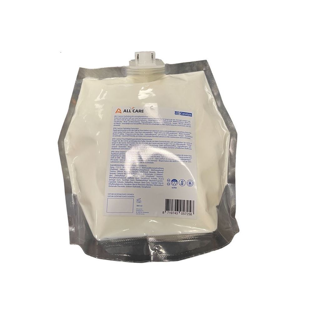 Zonnebrandcrème SPF30 Pouch 800 ml voor gebruik in onze zonnebranddispensers. Zorg ervoor dat iedereen altijd toegang heeft tot zonnebrandcrème om zichzelf te beschermen tegen schadelijke UV-stralen. Beschermingsfactor 30.
